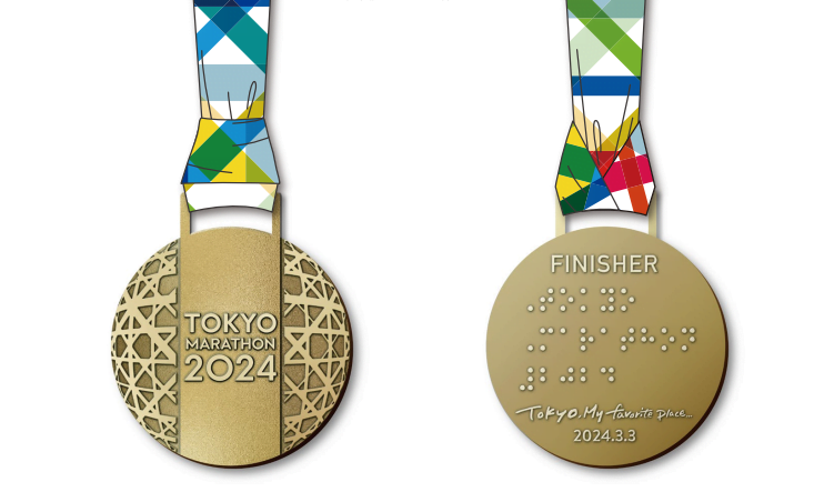 Die Medaillen für den Tokio-Marathon 2024, die von TANAKA Holdings zur Verfügung gestellt werden, sind aus reinem Gold, Silber und Bronze gefertigt. Dies unterscheidet sie von anderen Sportmedaillen und verleiht ihnen einen hohen Seltenheitsgrad und Wert. Die Individuelle Medaillen für Auszeichnungender an die drei Erstplatzierten vergeben wird, hat einen Durchmesser von etwa 65 mm und eine Dicke von rund 2,8 mm. Das Gewicht des reinen Goldes, Silbers und der Bronze beträgt etwa 180 Gramm, 100 Gramm bzw. 85 Gramm.