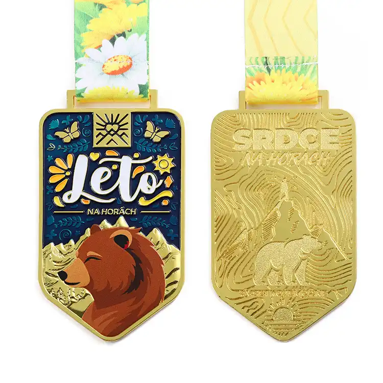 Hart Emaille Gold Metall Bär Muster 3d gedruckte Medaillen