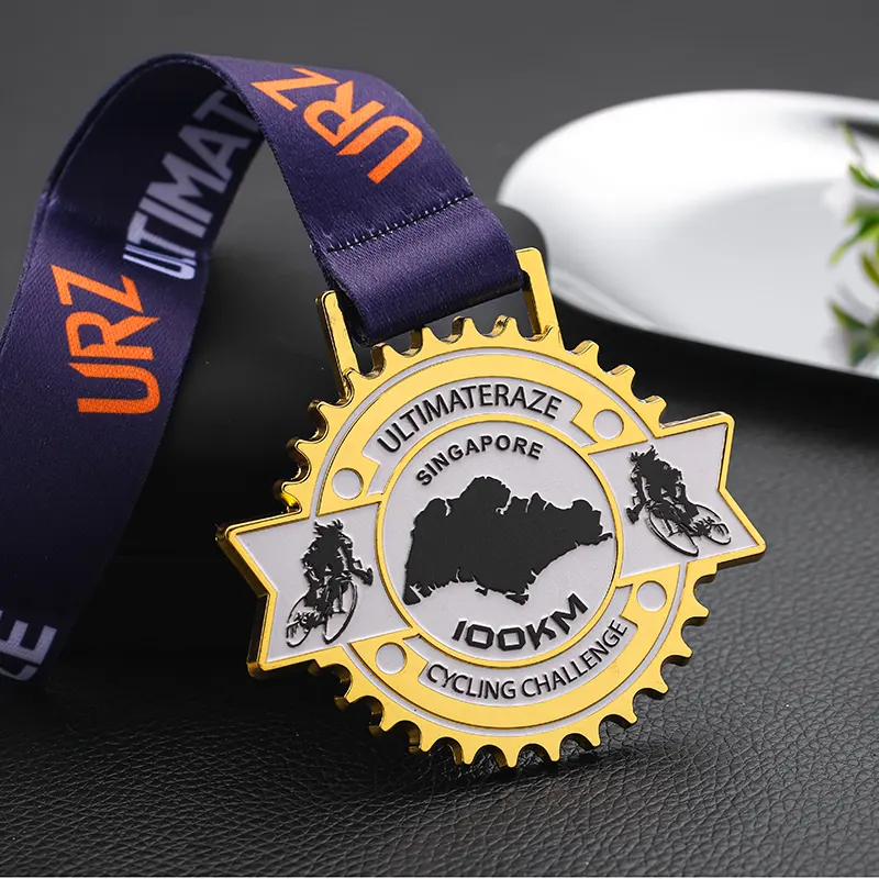 Die Singapur Ultimateraze Cycling Challenge 100km Completion Medal ist eine Anerkennung und Belohnung für Radsportler, die die 100km Radsportherausforderung im Wettbewerb erfolgreich absolviert haben. Diese individuell gestaltete Medaille symbolisiert die Ausdauer, das Durchhaltevermögen und den Mut der Radsportler in der Ultimateraze Riding Challenge und wird zu einem Symbol des Stolzes für die Radsportler, das sie an die Härten der Herausforderung und die Freude des Erfolgs erinnert.