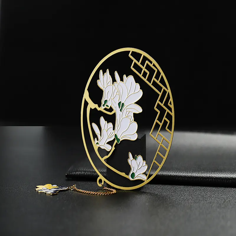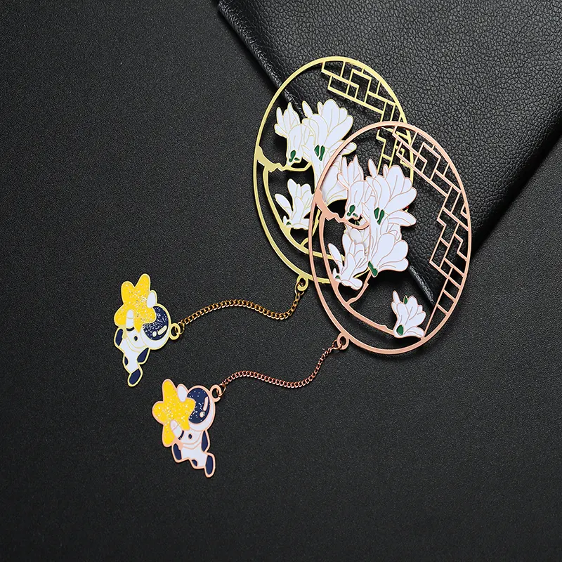 El marcapáginas colgante redondo de acero inoxidable lacado adopta un fino proceso de grabado y un diseño de chapado hueco. Puede utilizarse como accesorio de moda, mostrando un toque artístico único. Se puede utilizar como herramienta de marcado para la lectura para ayudarle a registrar su progreso de lectura. También se puede utilizar como un regalo exquisito, adecuado para diversas ocasiones, como cumpleaños, festivales, graduaciones, promociones, celebraciones de eventos, etc. Los mejores marcapáginas de metal, ¡contacte ahora!