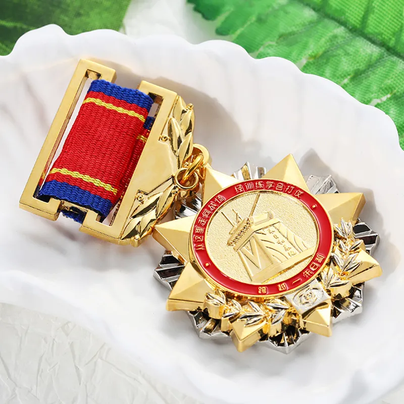 Questo personalizzato metallo pentagramma onore distintivo Realizzato in lega di zinco con finitura verniciata a fuoco. La forma a pentagramma è estremamente dettagliata e tridimensionale. Il cordino intrecciato rosso e blu ha un'ottima texture. Può essere inciso con testo e motivi a seconda delle vostre esigenze. È adatto per occasioni come encomi aziendali, premi militari e commemorazioni di eventi. La texture spessa e il design esclusivo rendono questo riconoscimento ancora più prezioso da collezionare.