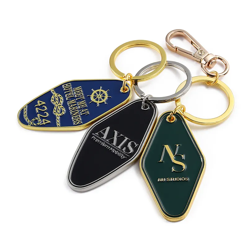 Il portachiavi per hotel con diamante dipinto d'oro è un accessorio di lusso progettato per gli hotel. Il suo design personalizzato permette agli ospiti di avere un ricordo unico e personalizzato del loro soggiorno. Realizzato con una finitura dipinta d'oro e accenti di diamante, questo portachiavi non solo ha una funzione pratica, ma aggiunge anche un tocco di eleganza a qualsiasi set di chiavi.
