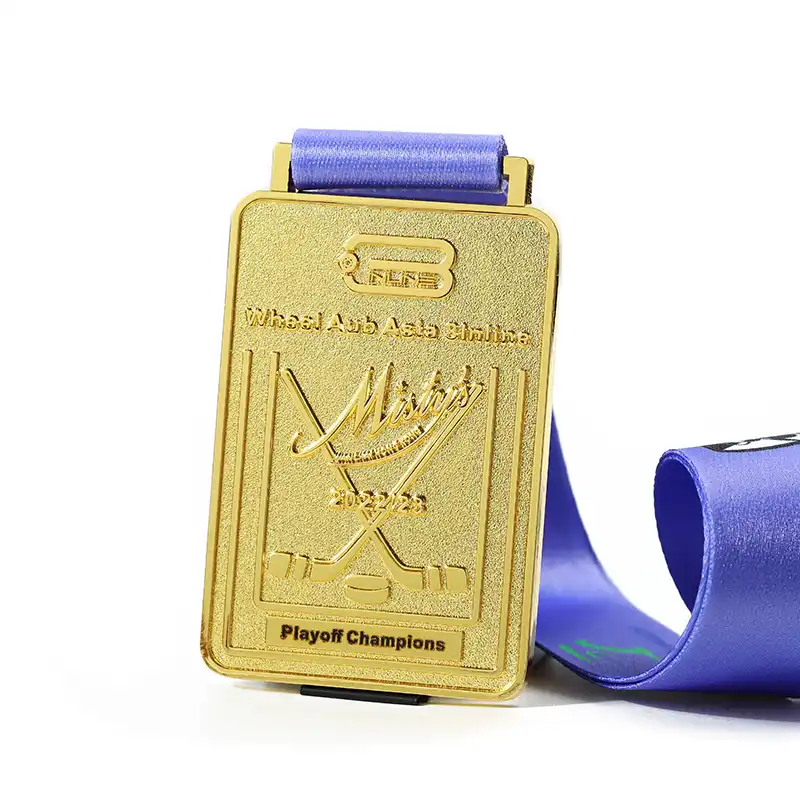 Le medaglie delle competizioni di hockey su ghiaccio, scintillanti sotto le luci dell'arena, simboleggiano l'apice della prodezza atletica e del lavoro di squadra. Sono distintivi d'onore, assegnati ai giocatori più abili, che commemorano le loro emozionanti vittorie sulla pista ghiacciata.