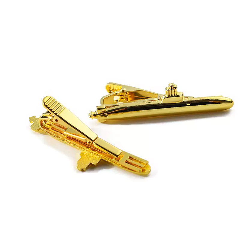 This is a 3D relief submarine gold Tie clip. Made of gold, with exquisite craftsmanship and realistic three-dimensional design. Compact structure, easy to fix on tie, practical and decorative. Suitable for submarines and military enthusiasts to wear, showcasing their love and support for the navy. Exquisite and precious, suitable for personal collection or gift giving.
