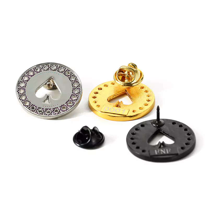 Esse pêssego em formato de pêssego oco ouro prata preto Distintivo de crachá apresenta um design exclusivo em tons de ouro, prata e preto. Ele apresenta um formato requintado de pêssego com um centro oco. A parte de trás do distintivo é gravada a laser, permitindo a personalização. Feito de materiais metálicos de alta qualidade, esse distintivo é durável e brilhante. Ele serve como um acessório moderno e distinto que pode ser usado em roupas, bolsas ou outros itens.